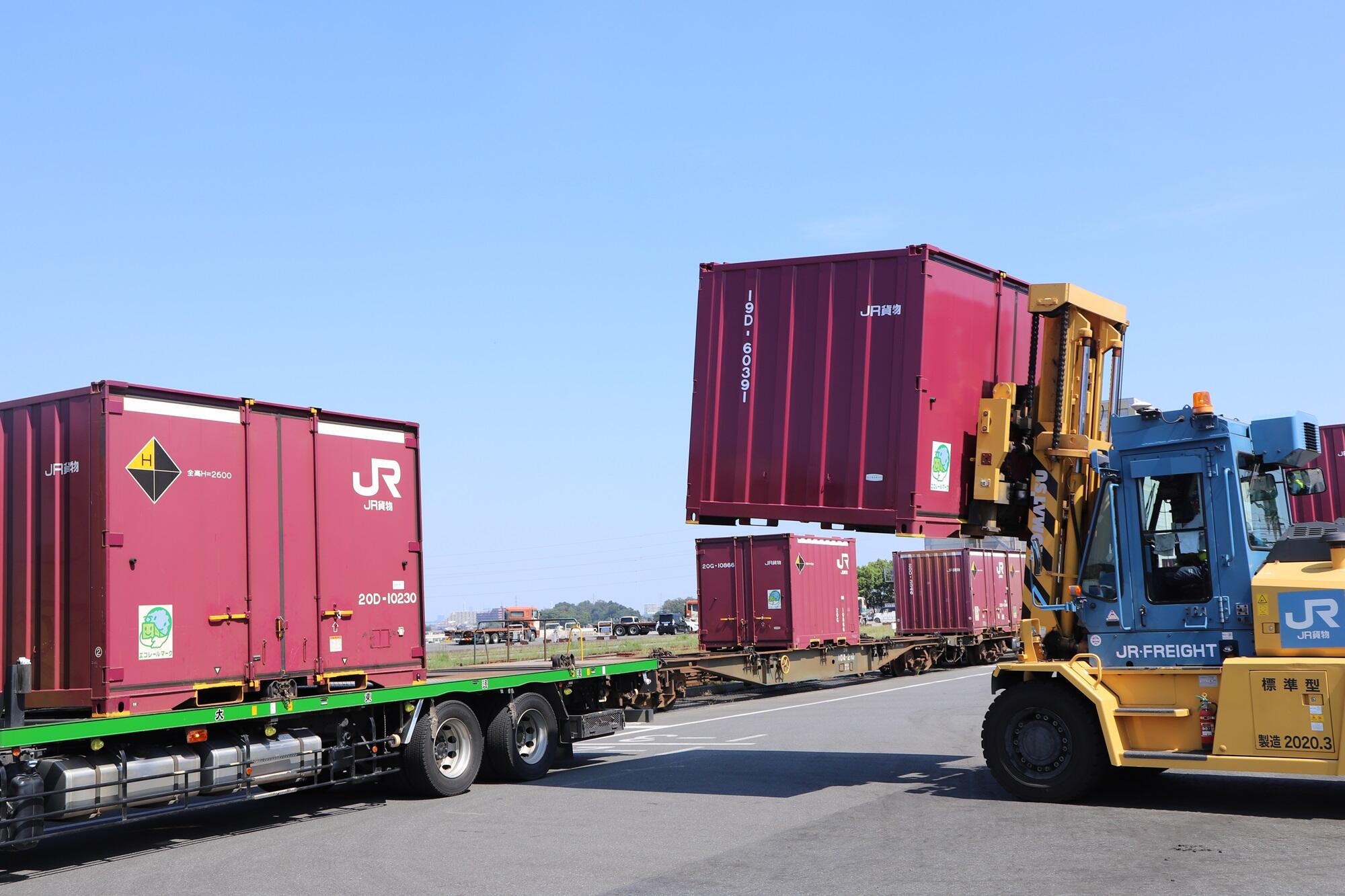 読売新聞川越工場は2025年9月から、これまで製紙工場から印刷工場まで長距離トラックで輸送していた新聞用紙(巻取用紙)について、貨物鉄道によるコンテナ輸送に代替するモーダルシフト化の取り組みを行っています。年間CO2排出量を約9割(600トン)削減します。